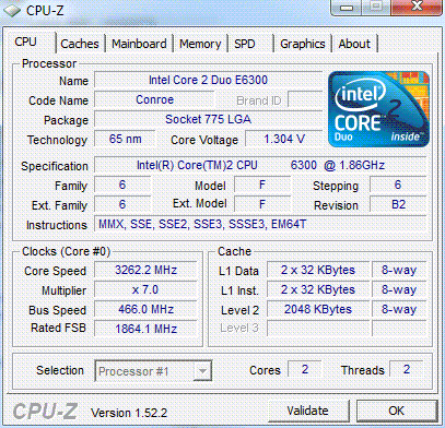 | Разгон, максимально стабильная частота (FSB x Ratio) | 3262 (466 x 7.0) |