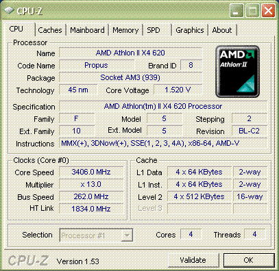 Результат разгона AMD Athlon II X4 (Propus)
