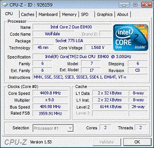 Результат разгона Intel Core 2 Duo (Wolfdale)