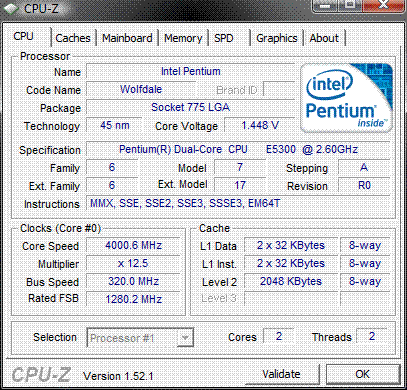 Результат разгона Intel Pentium Dual-Core (Wolfdale-2M)