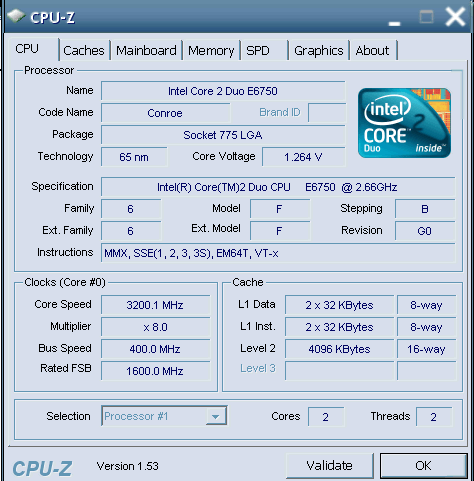 Результат разгона Intel Core 2 Duo (Conroe)