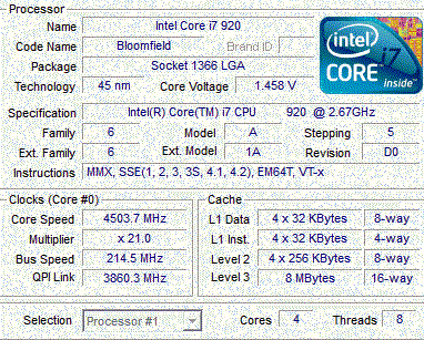 | Процессор (ядро) | Intel Core i7 (Bloomfield) |