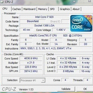 | Разгон, максимально стабильная частота (FSB x Ratio) | 4620 (220 x 21.0) |