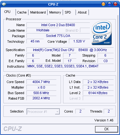 Результат разгона Intel Core 2 Duo (Wolfdale)