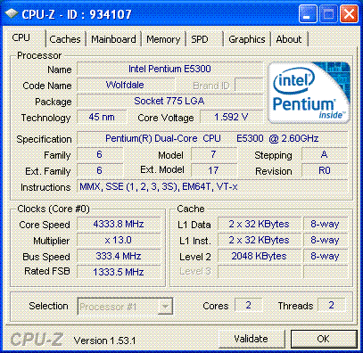 Результат разгона Intel Pentium Dual-Core (Wolfdale-2M)