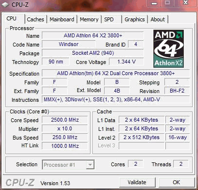 | Процессор (ядро) | AMD Athlon 64 X2 (Windsor) |