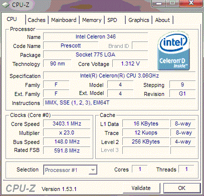 Результат разгона Intel Celeron D (Prescott-256)