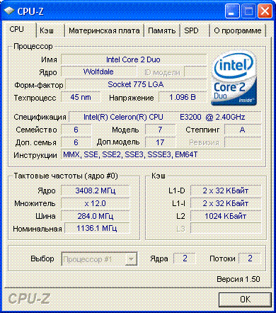 Результат разгона Intel Core 2 Duo (Wolfdale)