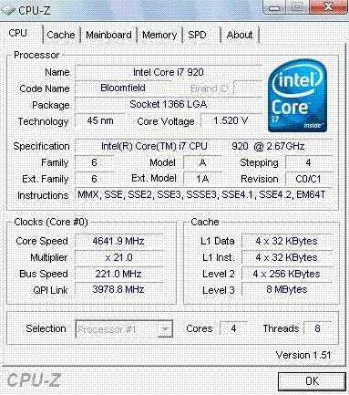 | Процессор (ядро) | Intel Core i7 (Bloomfield) |