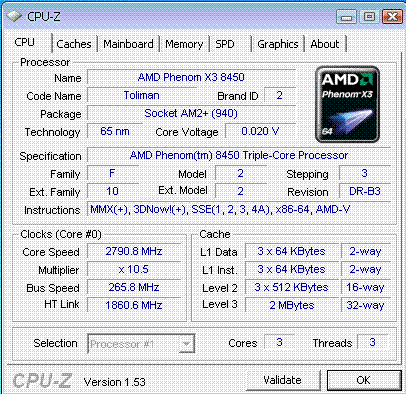 | Процессор (ядро) | AMD Phenom X3 (Toliman) |