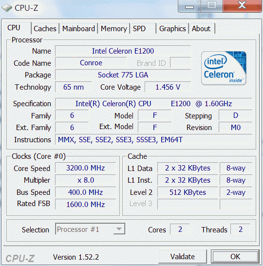 | Процессор (ядро) | Intel Celeron (Conroe-512) |