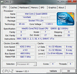 | Разгон, максимально стабильная частота (FSB x Ratio) | 4203 (467 x 9.0) |