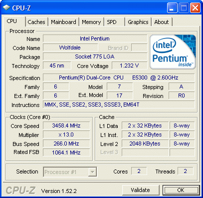 Результат разгона Intel Pentium Dual-Core (Wolfdale-2M)