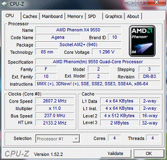 | Процессор (ядро) | AMD Phenom X4 (Agena) |