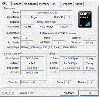 Результат разгона AMD Athlon II X2 (Regor)