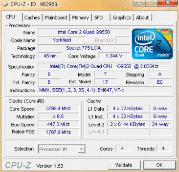 Результат разгона Intel Core 2 Quad (Yorkfield)