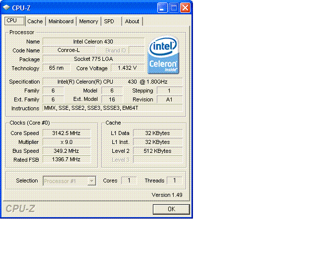 | Процессор (ядро) | Intel Celeron (Conroe-L) |