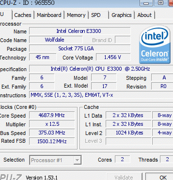 | Разгон, максимально стабильная частота (FSB x Ratio) | 4687 (375 x 12.5) |