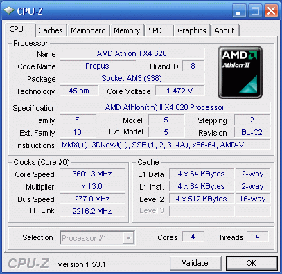 Результат разгона AMD Athlon II X4 (Propus)