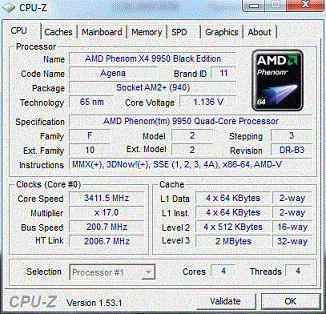 | Процессор (ядро) | AMD Phenom X4 (Agena) |