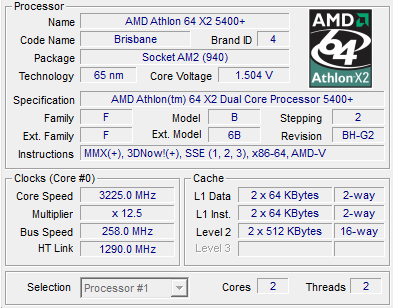 | Процессор (ядро) | AMD Athlon 64 X2 (Brisbane) |