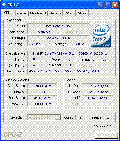 Результат разгона Intel Core 2 Duo (Wolfdale)