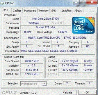 Результат разгона Intel Core 2 Duo (Wolfdale)