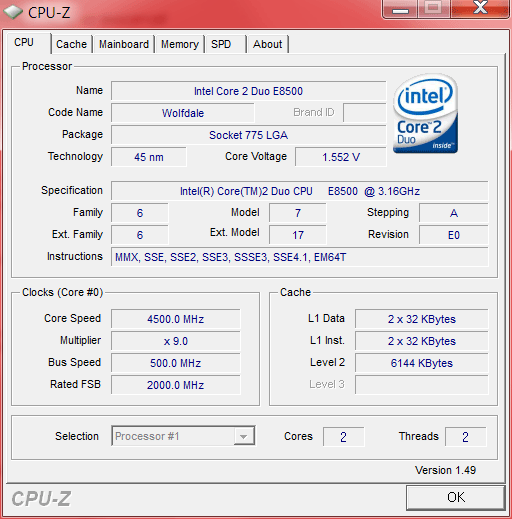 Результат разгона Intel Core 2 Duo (Wolfdale)