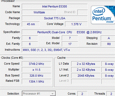 | Разгон, максимально стабильная частота (FSB x Ratio) | 3749 (326 x 11.5) |