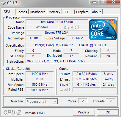 Результат разгона Intel Core 2 Duo (Wolfdale)