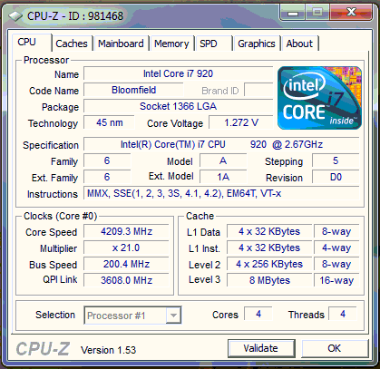 | Процессор (ядро) | Intel Core i7 (Bloomfield) |