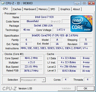 4.2Ghz - 24/7 QPI link x36 Множитель на память 6 (занижение до 1200Mz) Uncore Frequency x13 QPI /Vtt voltage 1.515v - Абсолютно стабильная система (игры,ВСЕ возможные тесты). Включен постоянно. 4,41Гц - проходит 3dmark Vantage c cpu score 26971 и на нем можно работать в 7ке, смотреть кино и тп..., а в Prime и сложных приложениях уходит в синий экран