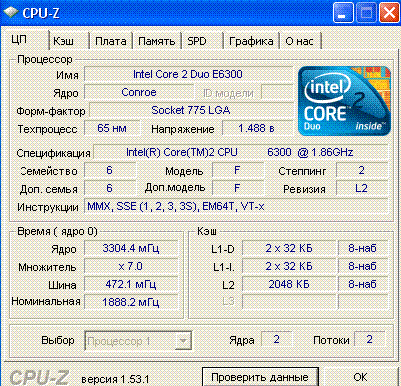 | Процессор (ядро) | Intel Core 2 Duo (Conroe-2M) |