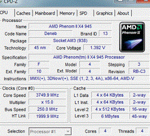 | Процессор (ядро) | AMD Phenom II X4 (Deneb) |
