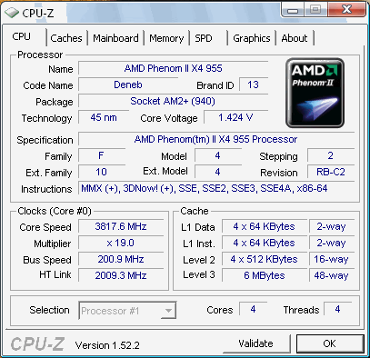 | Процессор (ядро) | AMD Phenom II X4 (Deneb) |