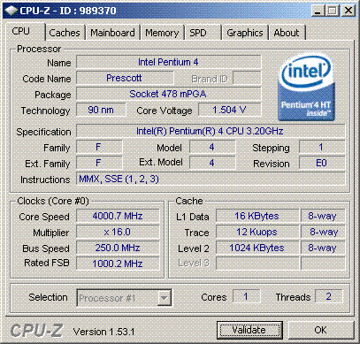 Результат разгона Intel Pentium 4 (Prescott)