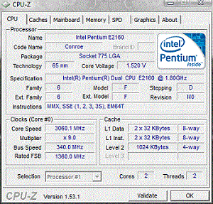 Результат разгона Intel Pentium Dual-Core (Conroe-1M)