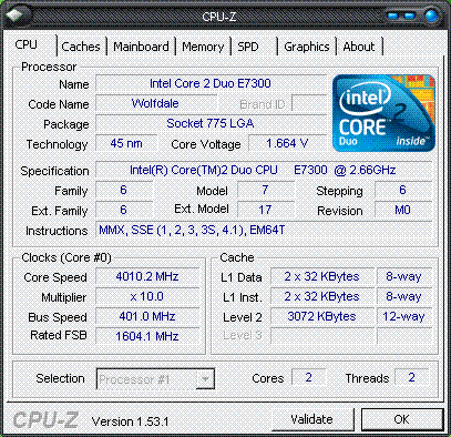 Результат разгона Intel Core 2 Duo (Wolfdale)