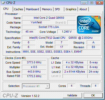 Результат разгона Intel Core 2 Quad (Yorkfield)
