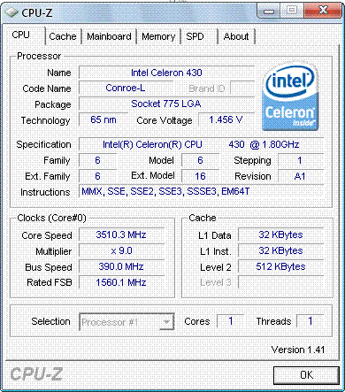 | Процессор (ядро) | Intel Celeron (Conroe-512) |