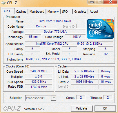 | Разгон, максимально стабильная частота (FSB x Ratio) | 3464 (433 x 8.0) |