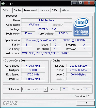 Результат разгона Intel Pentium Dual-Core (Wolfdale-2M)