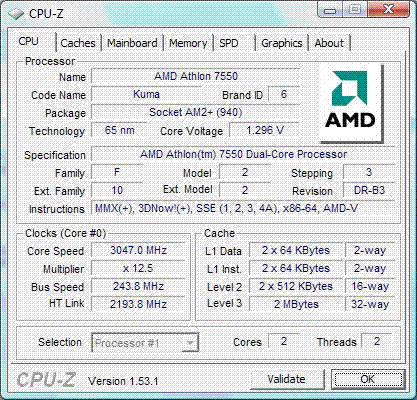 | Процессор (ядро) | AMD Athlon X2 (Kuma) |