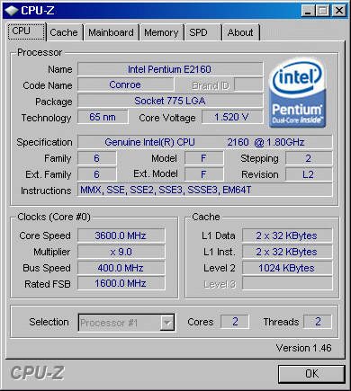 | Разгон, максимально стабильная частота (FSB x Ratio) | 3600 (400 x 9.0) |