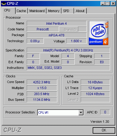 Результат разгона Intel Pentium 4 (Prescott)