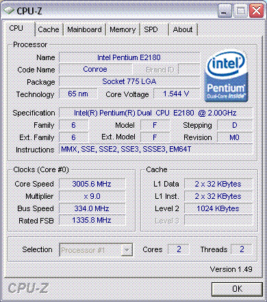 | Разгон, максимально стабильная частота (FSB x Ratio) | 3006 (334 x 9.0) |