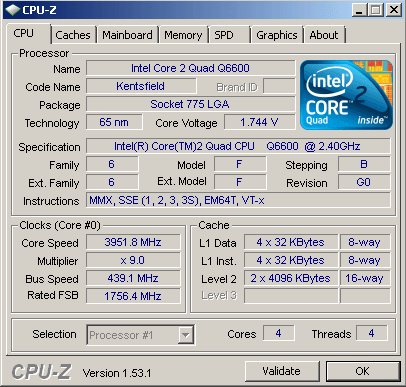 Результат разгона Intel Core 2 Quad (Kentsfield)