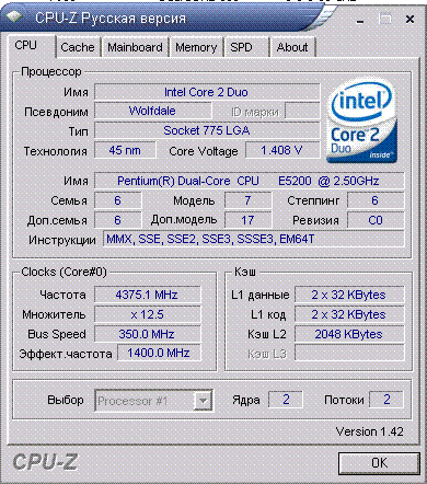 Результат разгона Intel Pentium Dual-Core (Wolfdale-2M)