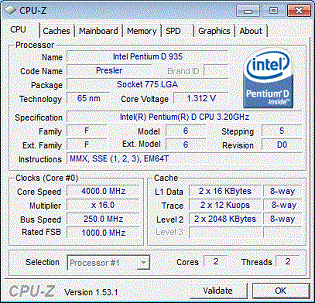 Результат разгона Intel Pentium D (Presler)