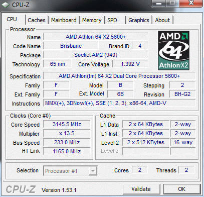 Результат разгона AMD Athlon 64 X2 (Brisbane)